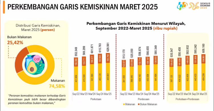 “Jumlah penduduk miskin pada Maret 2025 sebanyak 23,85 juta orang atau turun 0,2 juta dibandingkan September 2024. Dari persentasenya, itu setara 8,47 persen dari total penduduk” terangnya. **